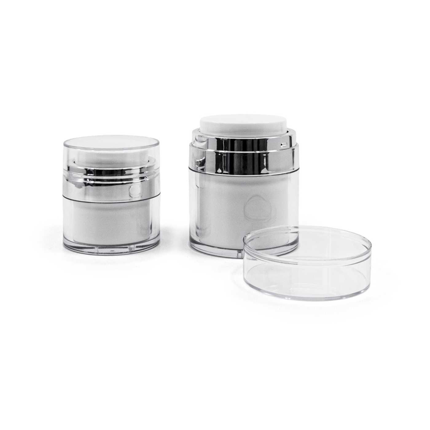 Ochrání váš finální produkt před vzduchem a před kontaminací bakteriemi. Z tohoto důvodu je ideálním řešením pro všechny výrobky, které neobsahují konzervační látky. Pomáhá tak prodloužit životnost těchto výrobků až o 15 % a více. Tento bezvzduchový kelímek je vyroben z odolného PP plastu. Funguje na principu podtlaku, který se vytváří uvnitř kelímku, a proto není potřeba žádná hadice. Pomocí mechanické pumpy dávkujete přesné množství výrobku, aniž byste museli kelímek otevírat a vystavovat jeho obsah vzduchu. Obrovskou výhodou je, že kelímek můžete používat opakovaně. Před každým použitím jej doporučujeme důkladně umýt a zcela vydezinfikovat alkoholem (nejméně 60 % alkoholu). Další dobrou zprávou je, že kelímek je plně recyklovatelný.Použití: tělové krémy, balzámy, masky a gely