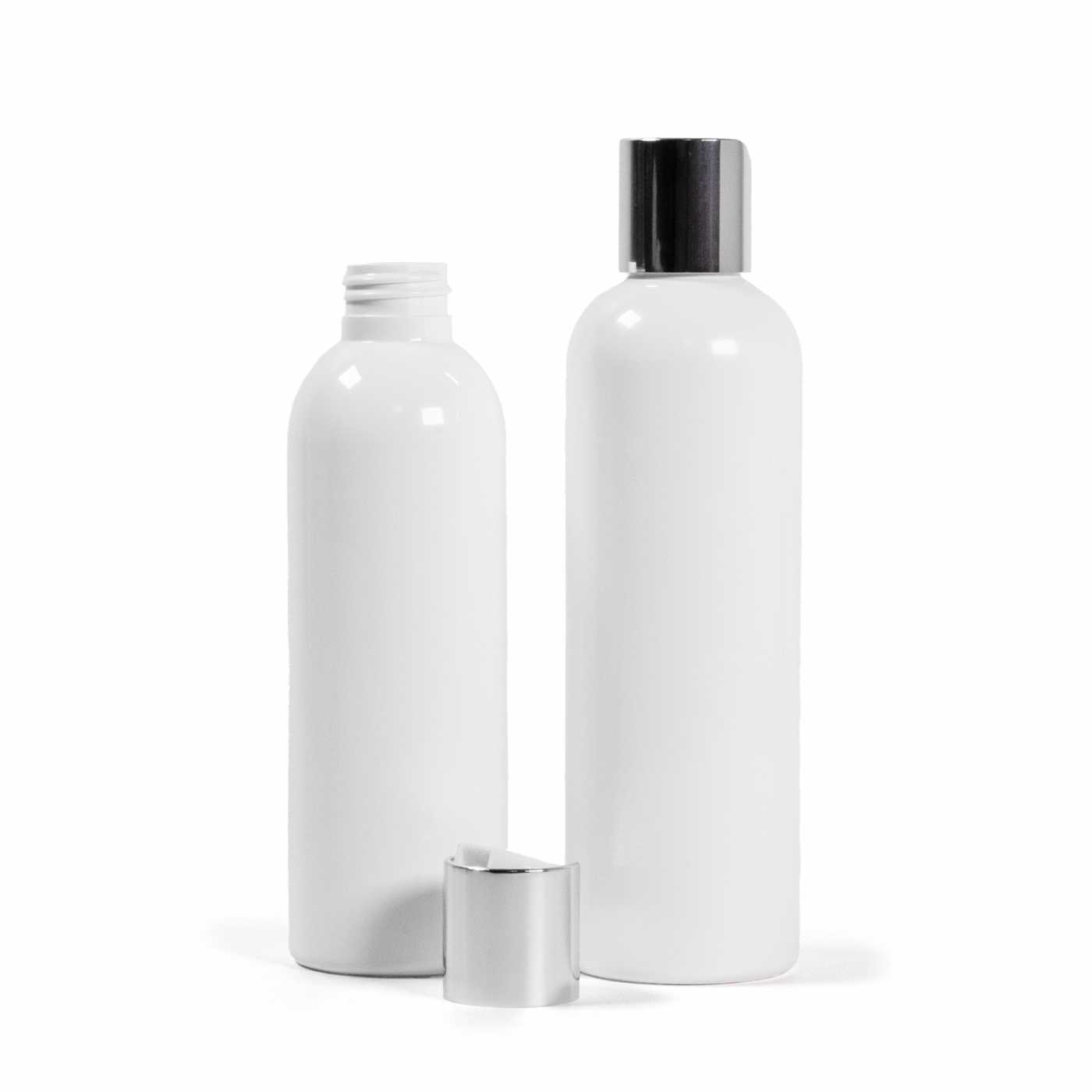 Bílá plastová láhev, stříbrné víčko flip‑top, 250 ml