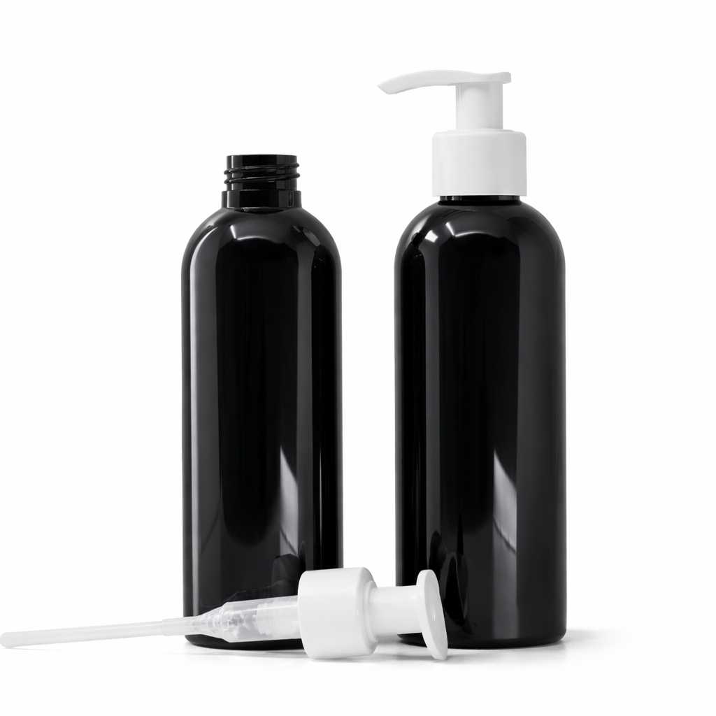 Plastová láhev s lesklým povrchem a bílou pumpičkou představuje praktické řešení pro dávkování široké škály tekutých přípravků, zejména v segmentech péče o tělo, pleť a vlasy. Ergonomicky tvarovaná nádoba umožňuje pohodlné uchopení a kontrolované stlačování pumpičky, díky čemuž je vhodná pro balení produktů, kde je důležité přesné a hygienické dávkování. Konstrukce obalu podporuje stabilitu při skladování i používání a je navržena tak, aby chránila obsah před vnějšími vlivy při běžném používání.