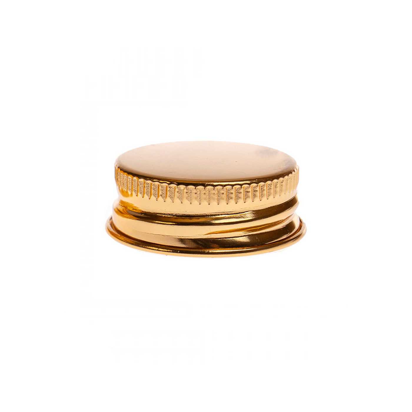 Hliníková víčka vhodná na láhev o průměru hrdla 28 mm ve zlatém provedení.