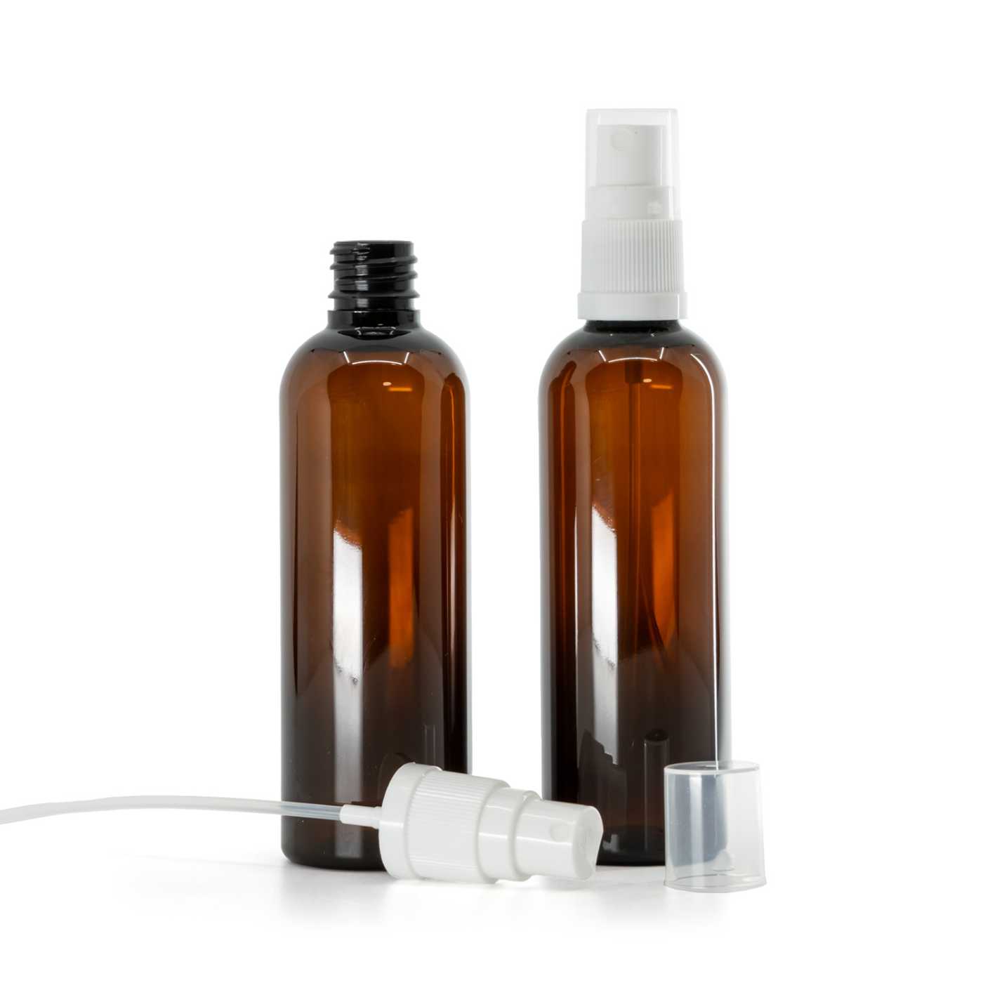 Hnědá plastová lahvička s bílým rozprašovačem 100 ml