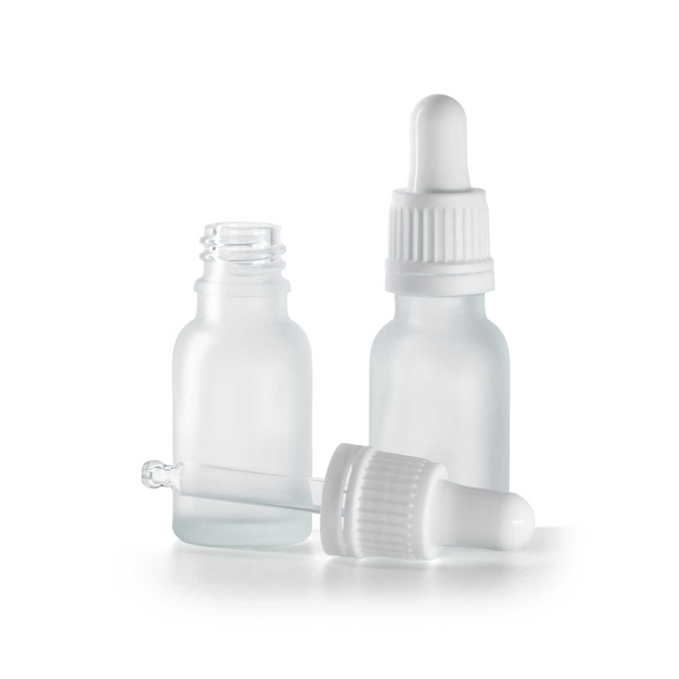 Matná čirá skleněná lahvička s bílou pipetou 15 ml
