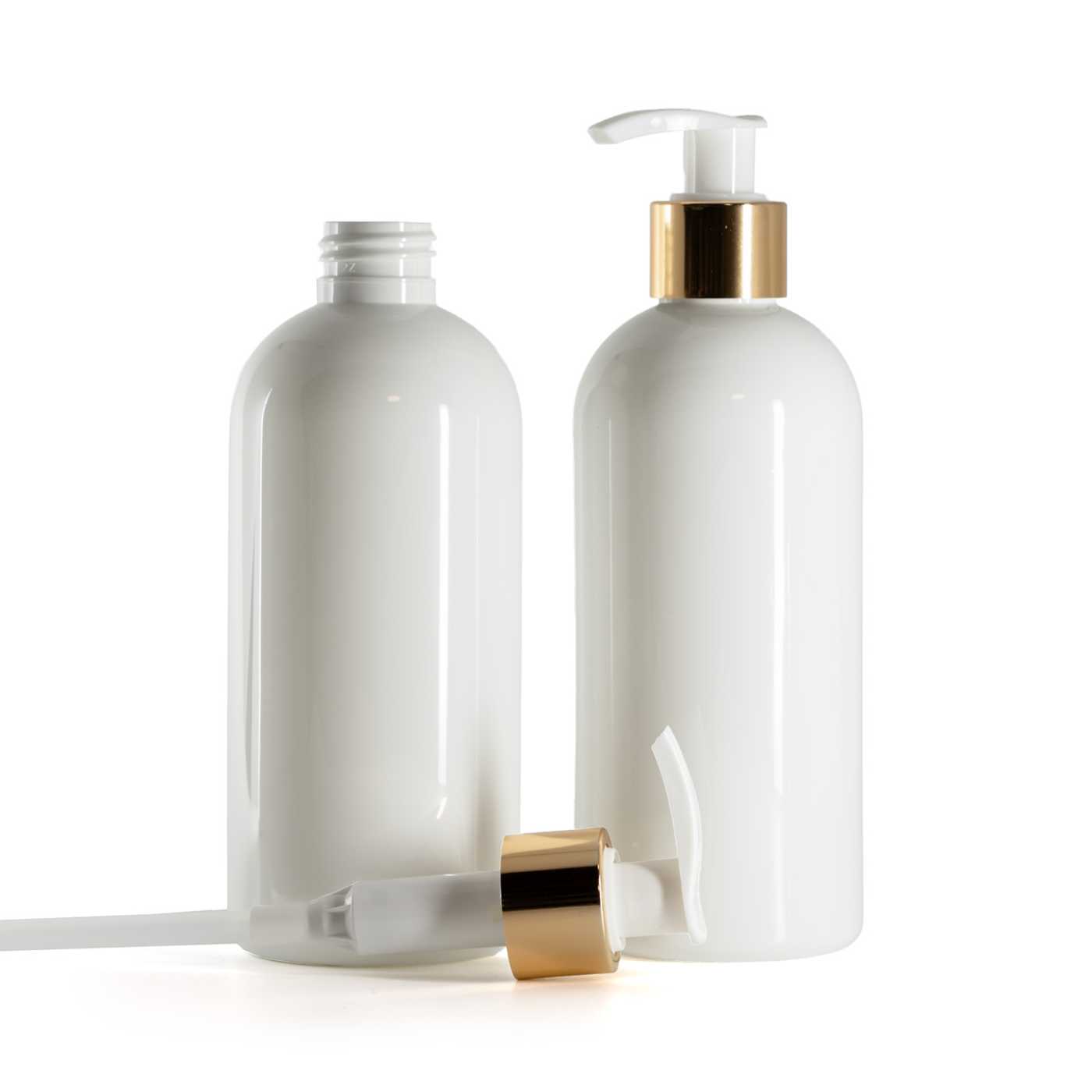 Plastová láhev bílá, bílo-zlatý dávkovač, 300 ml