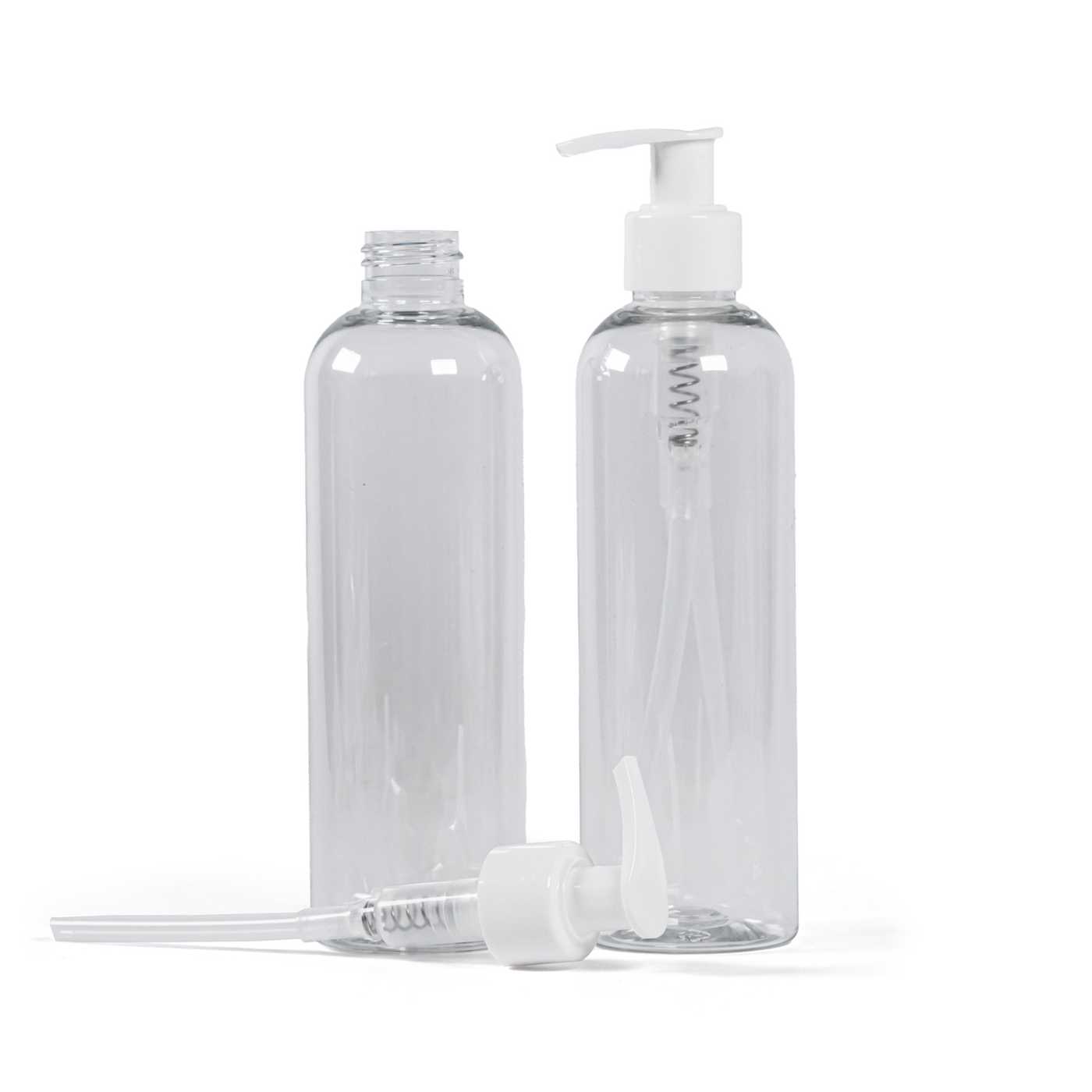 Plastová láhev, průhledná, pumpička, bílá, 250 ml