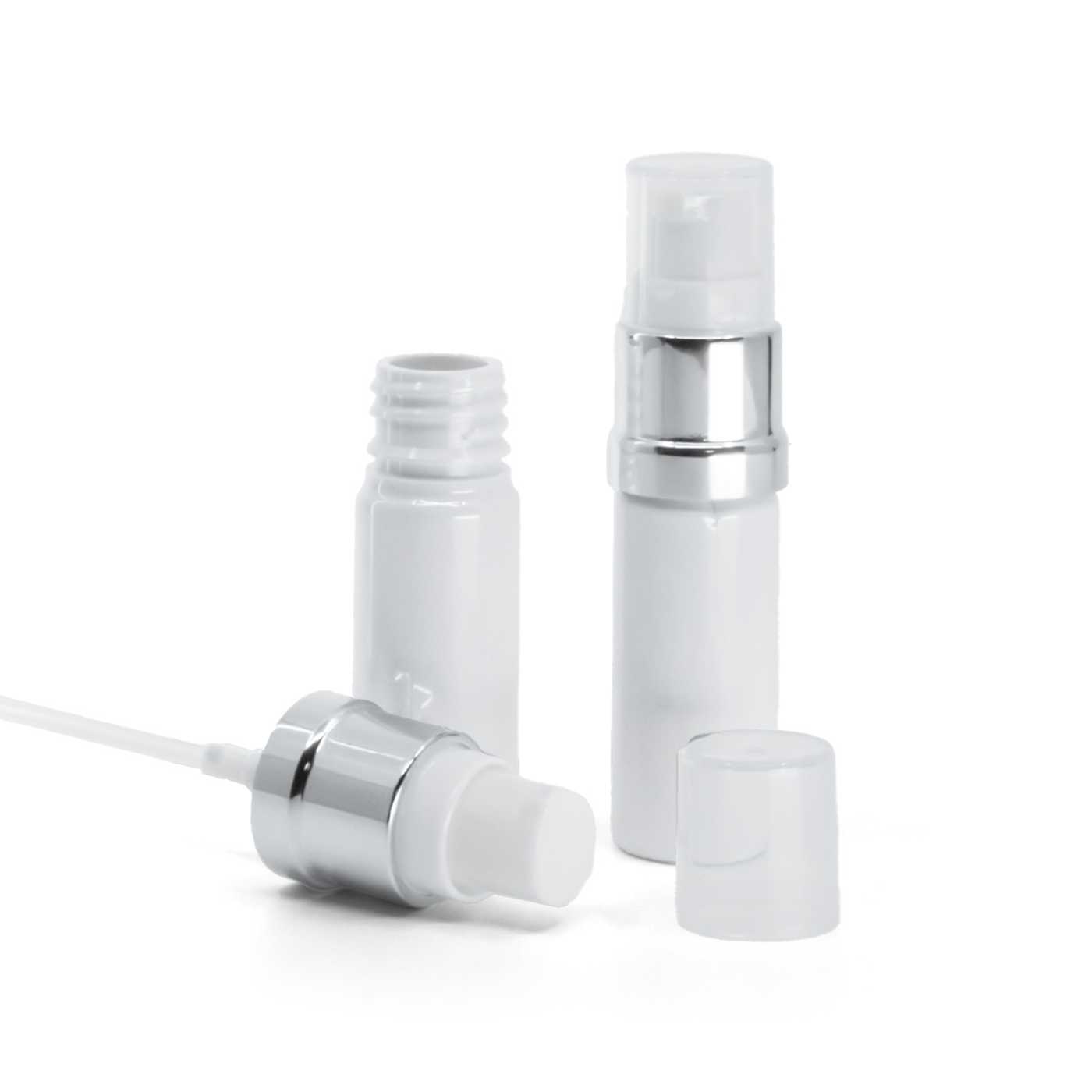 Plastová lahvička, lékovka, bílá, bílo-stříbrný lesklý dávkovač, 10 ml