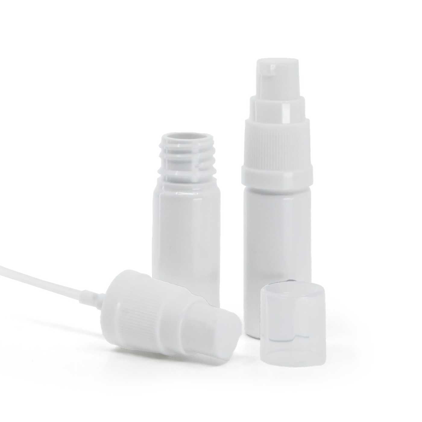 Bílý plastový dávkovač krému s průhledným uzávěrem. Vhodný pro lahve s průměrem hrdla 18 mm.