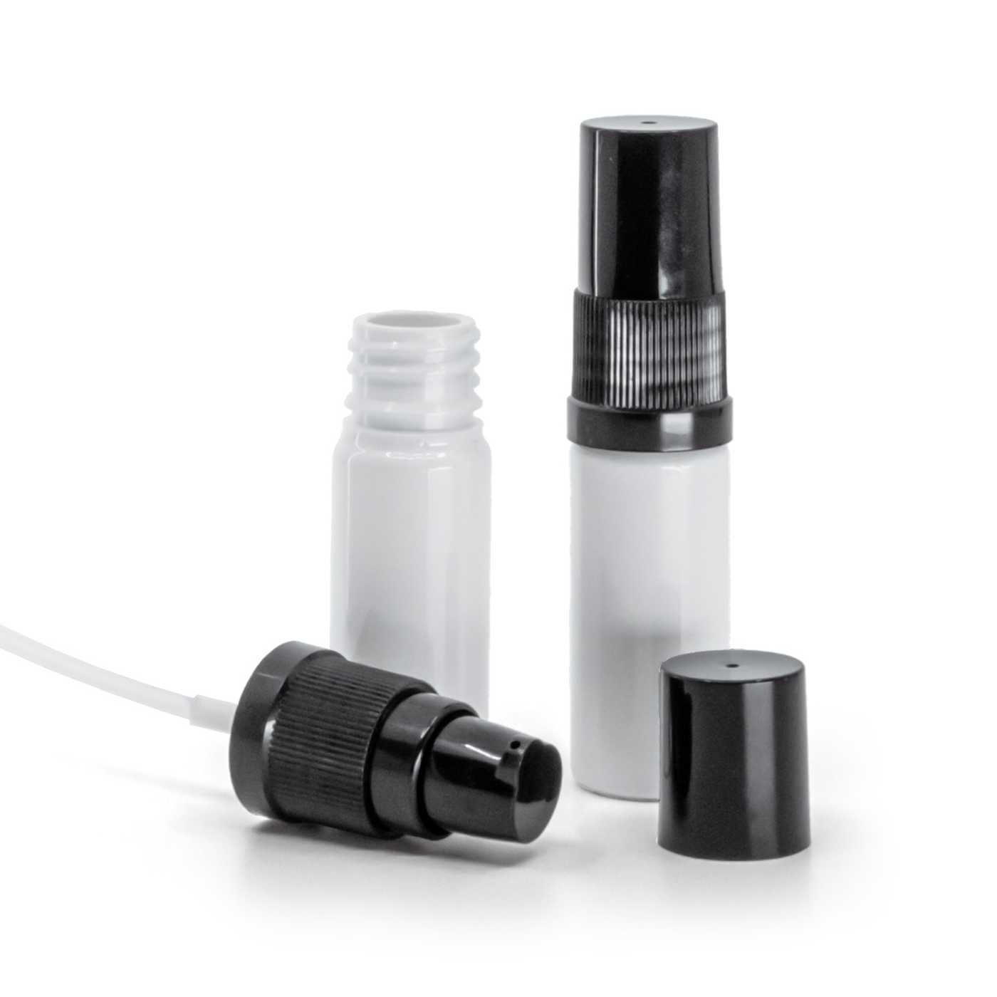 Černý plastový dávkovač krému s černým neprůhledným uzávěrem. Je vhodný pro všechny naše skleněné lahvičky.