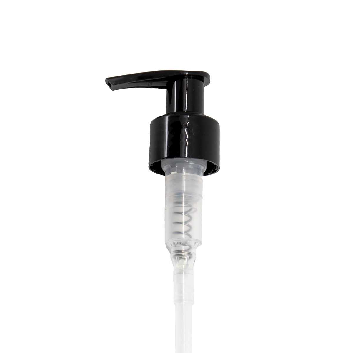 Černá plastová pumpička na emulze, tělová mléka a jiné viskózní tekutiny.Vhodná pro lahve s průměrem hrdla 24 mm.
