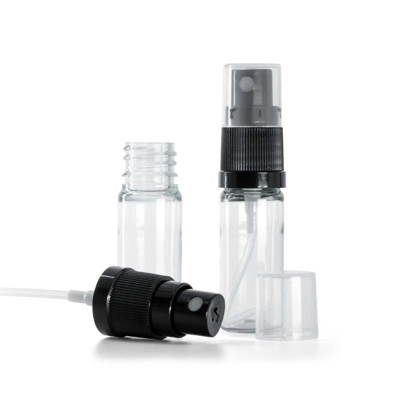 Průhledná plastová lahvička s černým rozprašovačem, 10 ml