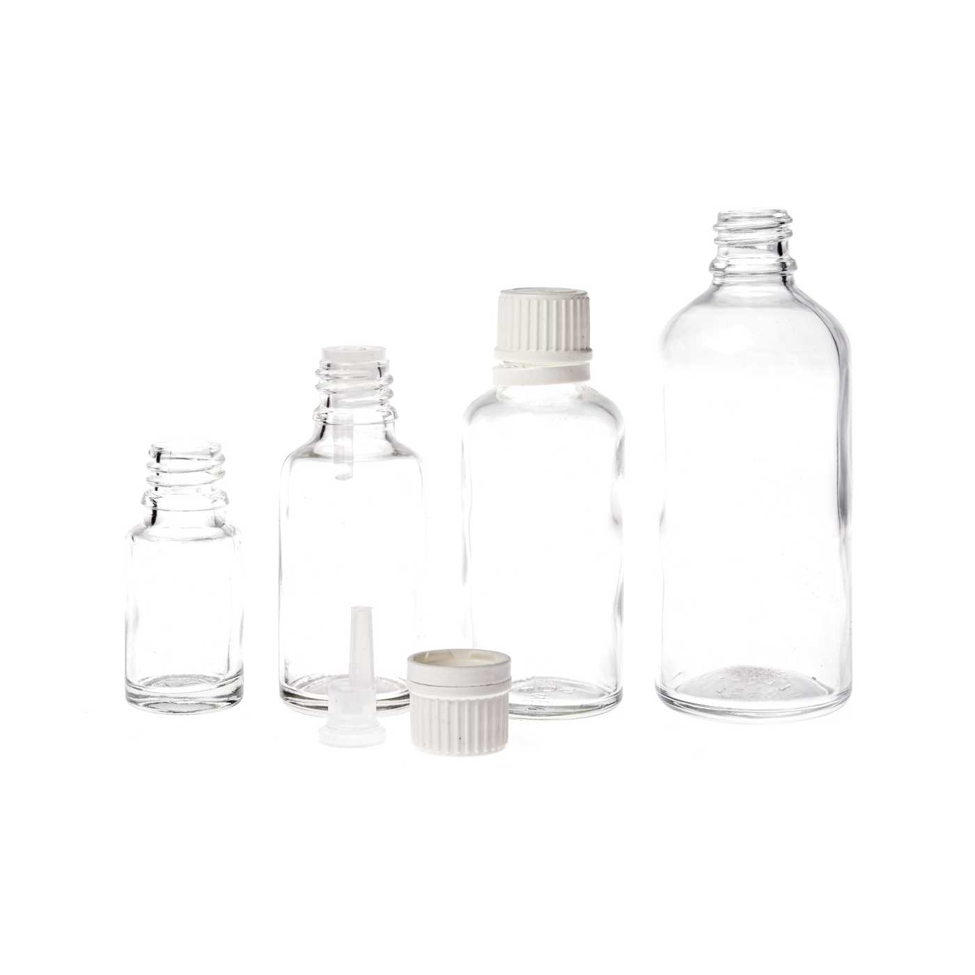 Skleněná lahvička, tzv. lahvička, je vyrobena ze silného průhledného skla. Používá se k uchovávání tekutin. Objem: 15 ml, celkový objem 18 mlVýška lahvičky: 64 mmPrůměr lahvičky: 28,5 mmHrdlo lahvičky: 18/410