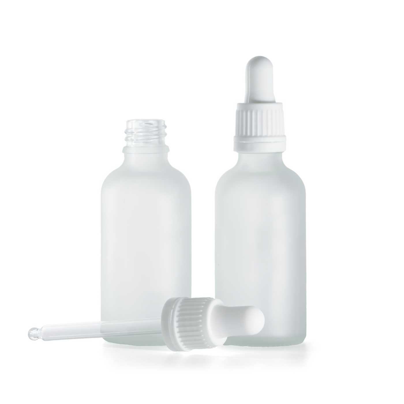 Skleněná láhev, průhledná mléčná, bílé kapátko, 50 ml