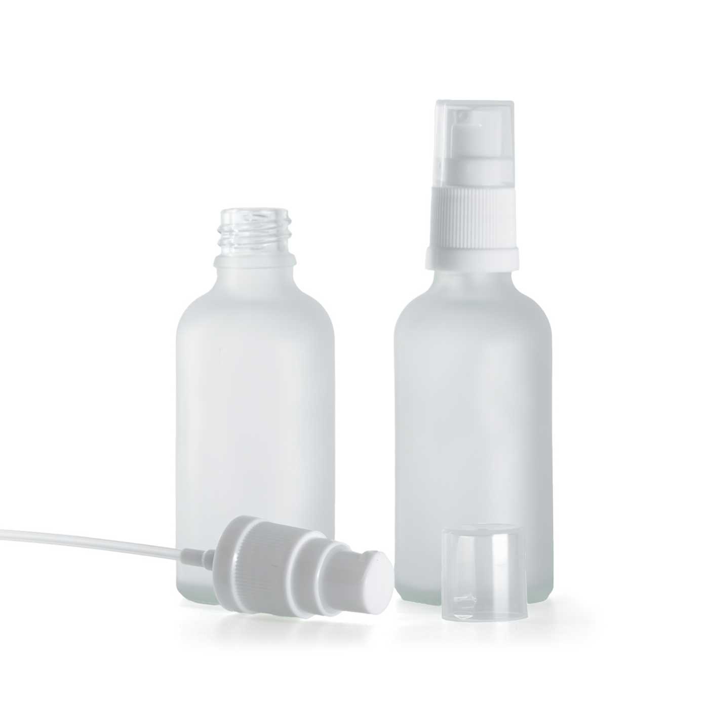 Skleněná láhev je vyrobena ze silného průhledného skla, které je na vnější straně broušené. Objem: 50 ml, celkový objem 55 mlVýška láhve: 78,8 mmPrůměr láhve: 33 mmHrdlo láhve: 18/410