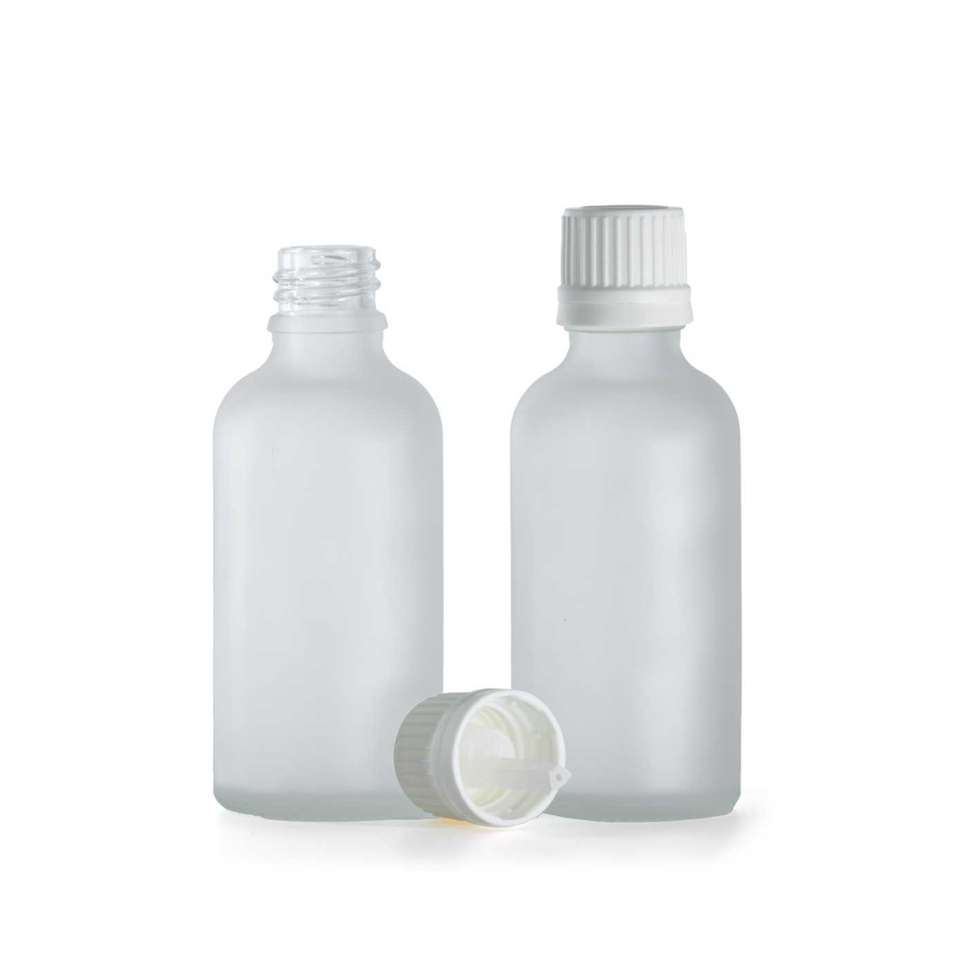Skleněná láhev je vyrobena ze silného průhledného skla, které je na vnější straně broušené. Objem: 50 ml, celkový objem 55 mlVýška láhve: 78,8 mmPrůměr láhve: 33 mmHrdlo láhve: 18/410