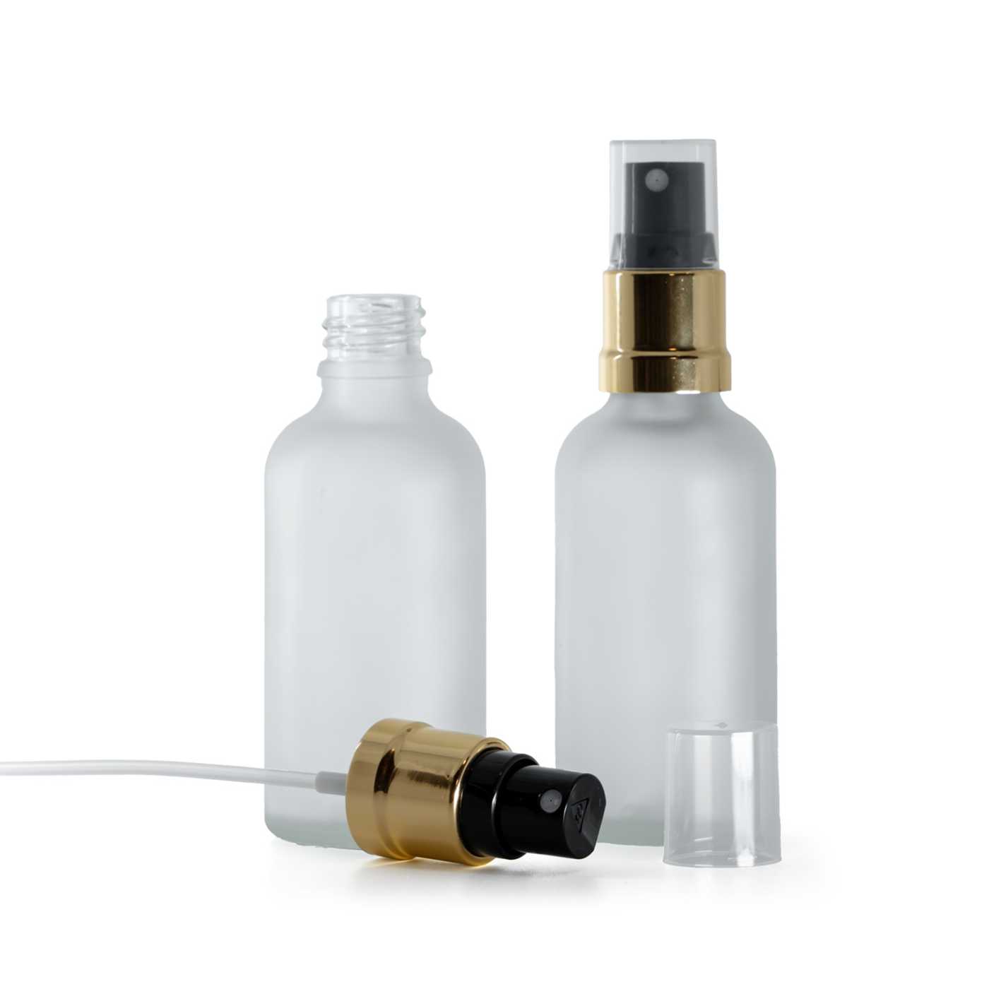 Skleněná láhev, průhledná mléčná, černo-zlatý sprej, 50 ml