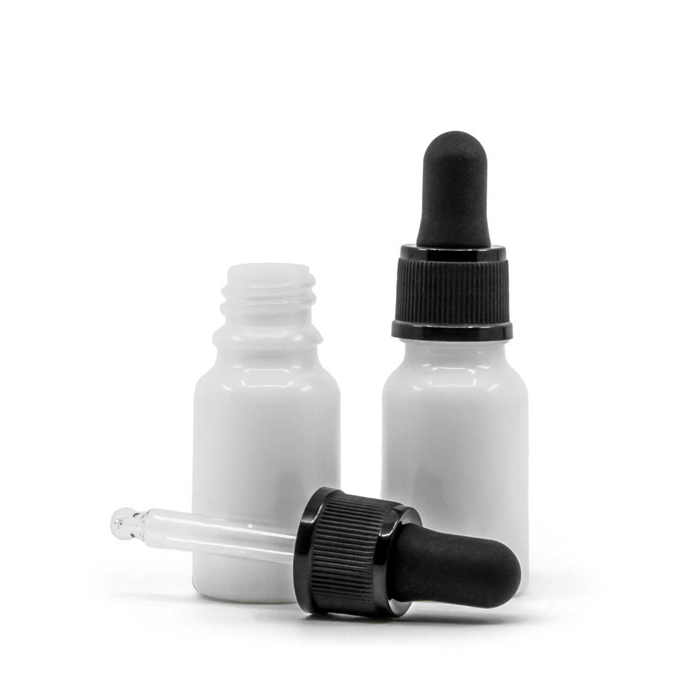 Skleněná lahvička bílá s černým kapátkem 10 ml