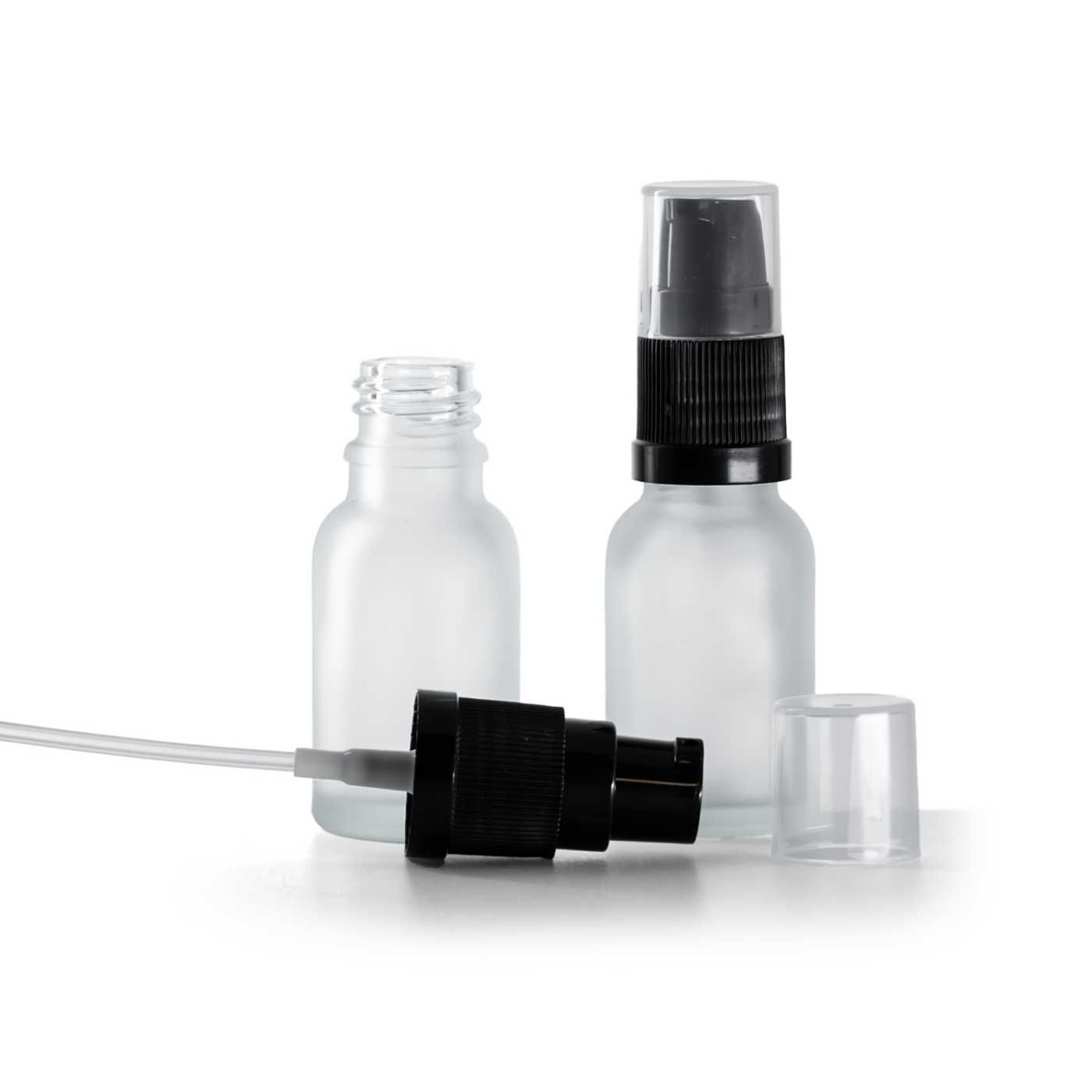 Skleněná lahvička, čirá matná, dávkovač krému, 15 ml